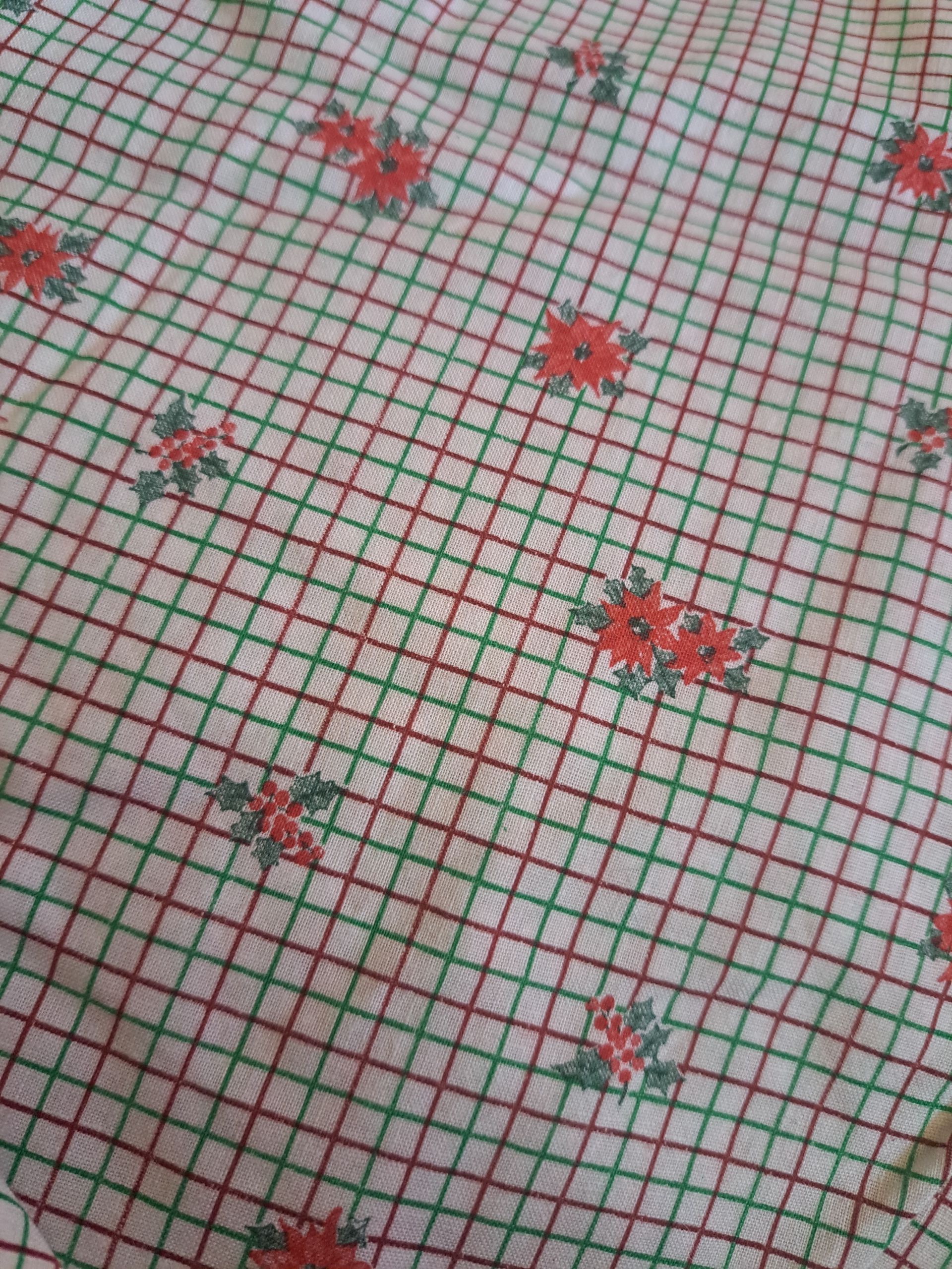 Red and Green Plaid, Red Poinsettia and Holly and Berries