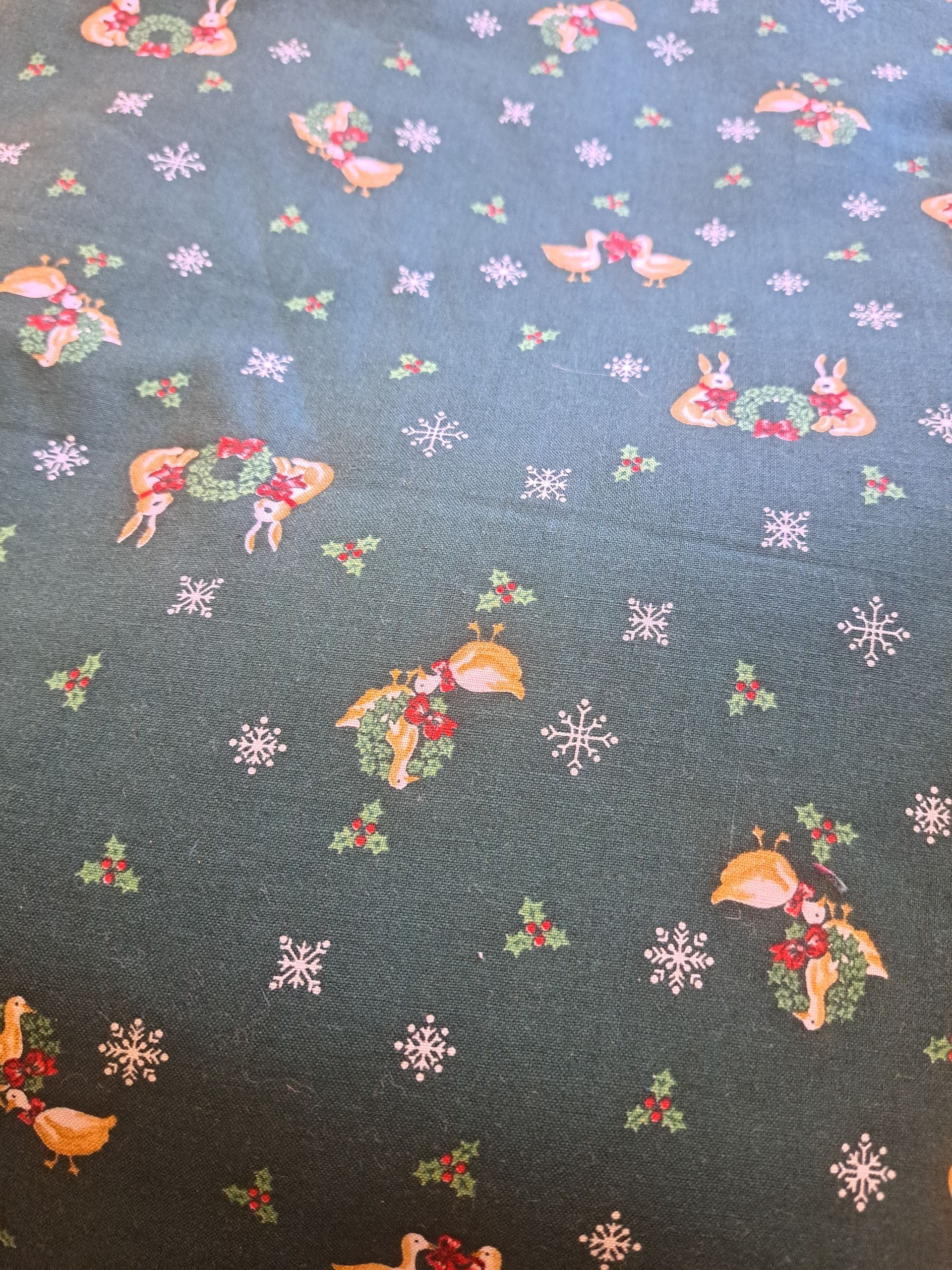 Vintage 1980's Goose and Bunny on Green by: Hallmark Fabrics